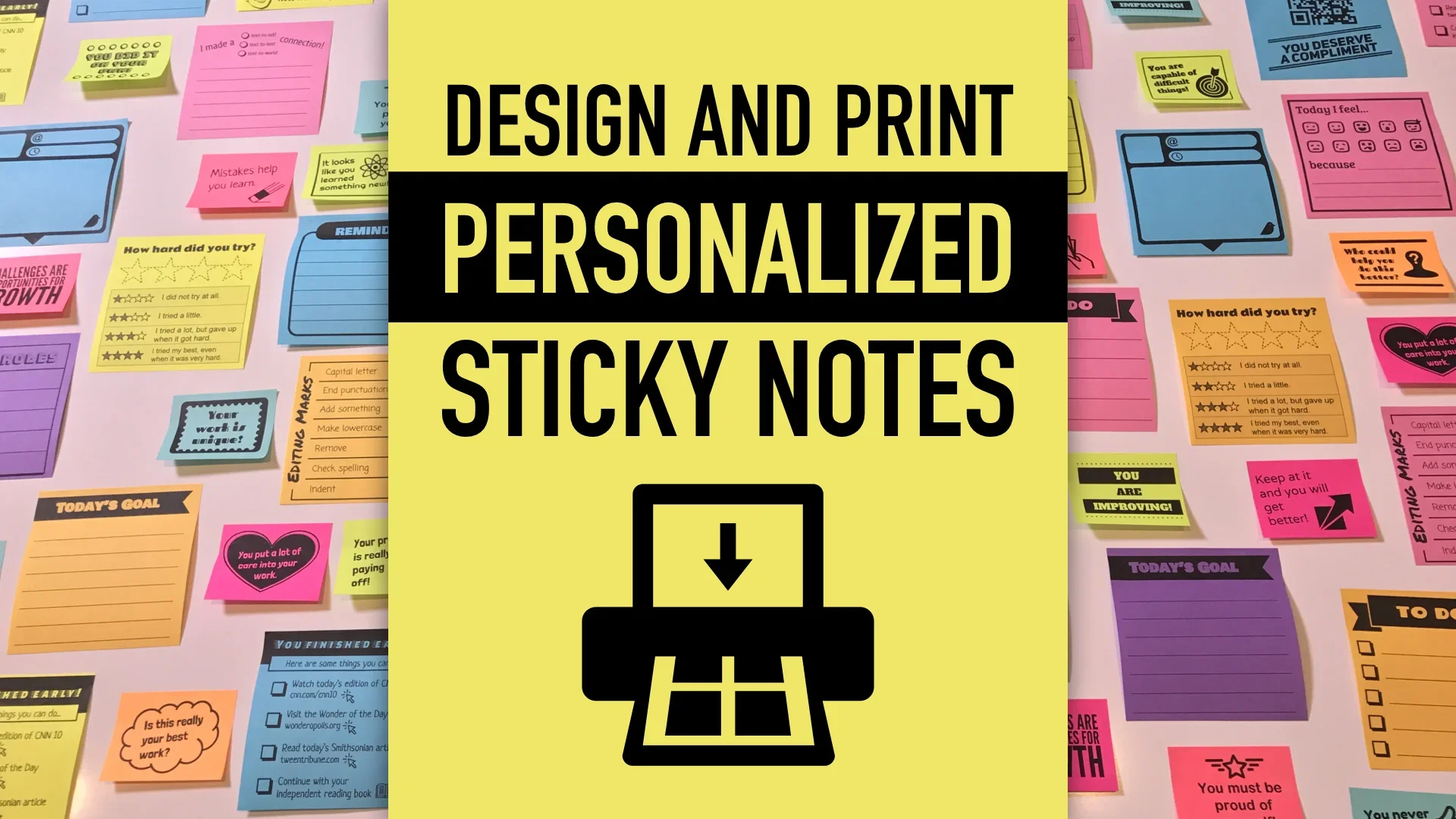 Did you know you can print on sticky notes using your computer’s printer? It’s true! And, you can design your own customized sticky notes in an online app you already know how to use: Google Slides or Canva! Examine loads of examples of educator-designed sticky notes and see demonstrations of design techniques to make your notes look absolutely awesome when printed.